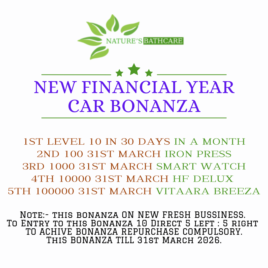 NATURE’S BATHCARE is a fastest growing and pioneer company in Direct selling market. Everyone can gain achievement through our amazing business module. Our business plan is an excellent plan in the direct selling industries and the more miraculous mechanism for income generation to all.